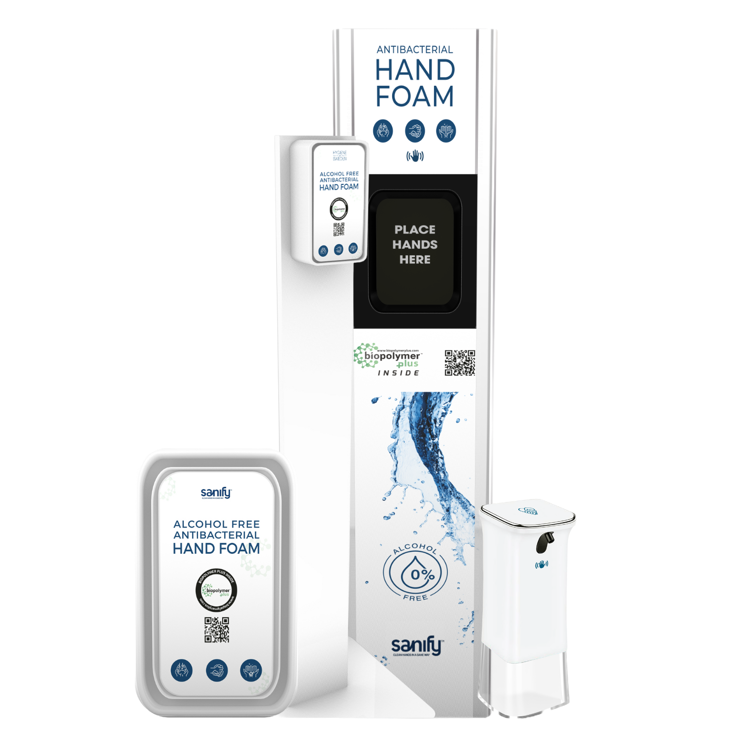 Wanneer je Sanify combineert met onze dispensers, bereik je de optimale voorwaarden voor een ervaring die zowel effectief, aangenaam als verzorgend is. Onze dispensers dekken alle behoeften en kunnen worden aangepast met eigen opdruk, waardoor je de mogelijkheid hebt om een persoonlijke en unieke oplossing te creëren. Dit zorgt ervoor dat je handen de verzorging krijgen die ze verdienen, terwijl de hygiëne op het hoogste niveau wordt gehouden.
