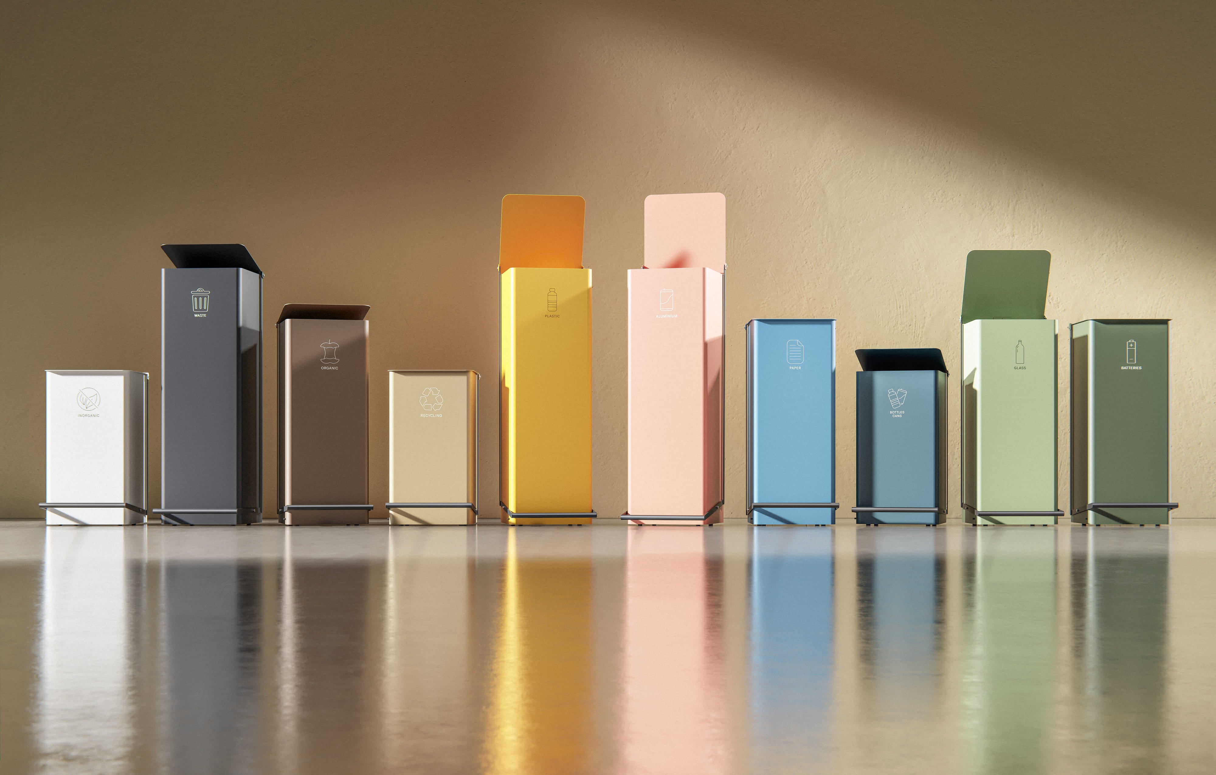 De Thun afvalcontainer is verkrijgbaar in drie verschillende maten, in een grote verscheidenheid aan kleurcombinaties en met de mogelijkheid voor pictogrammen, zodat afvalscheiding zowel functioneel als visueel harmonieus is.